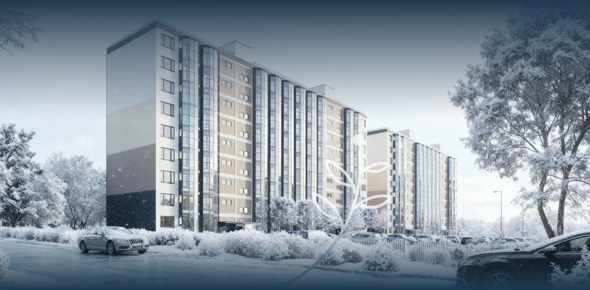 Из квартир открывается вид на зеленые аллеи и благоустроенный двор.
